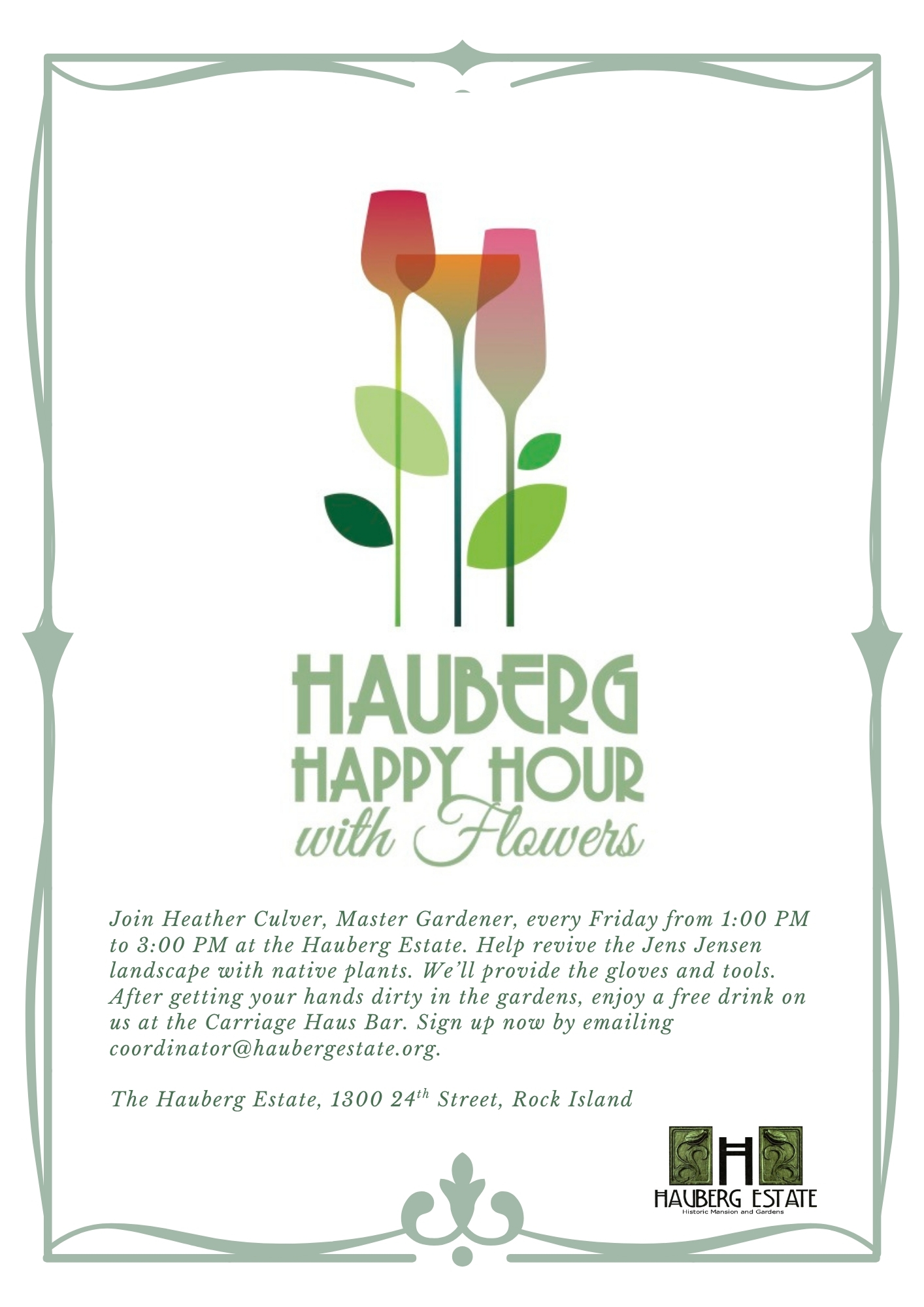Join Master Gardener, Heather Culver, every Friday from 1:00 PM to 3:00 PM. Help revive the historic Jens Jensen landscape with native plants. We provide the gloves, tools and plants. After getting your hands dirty in the gardens, enjoy a free drink on us in the Carriage Haus Bar. Sign-up by emailing [email protected].