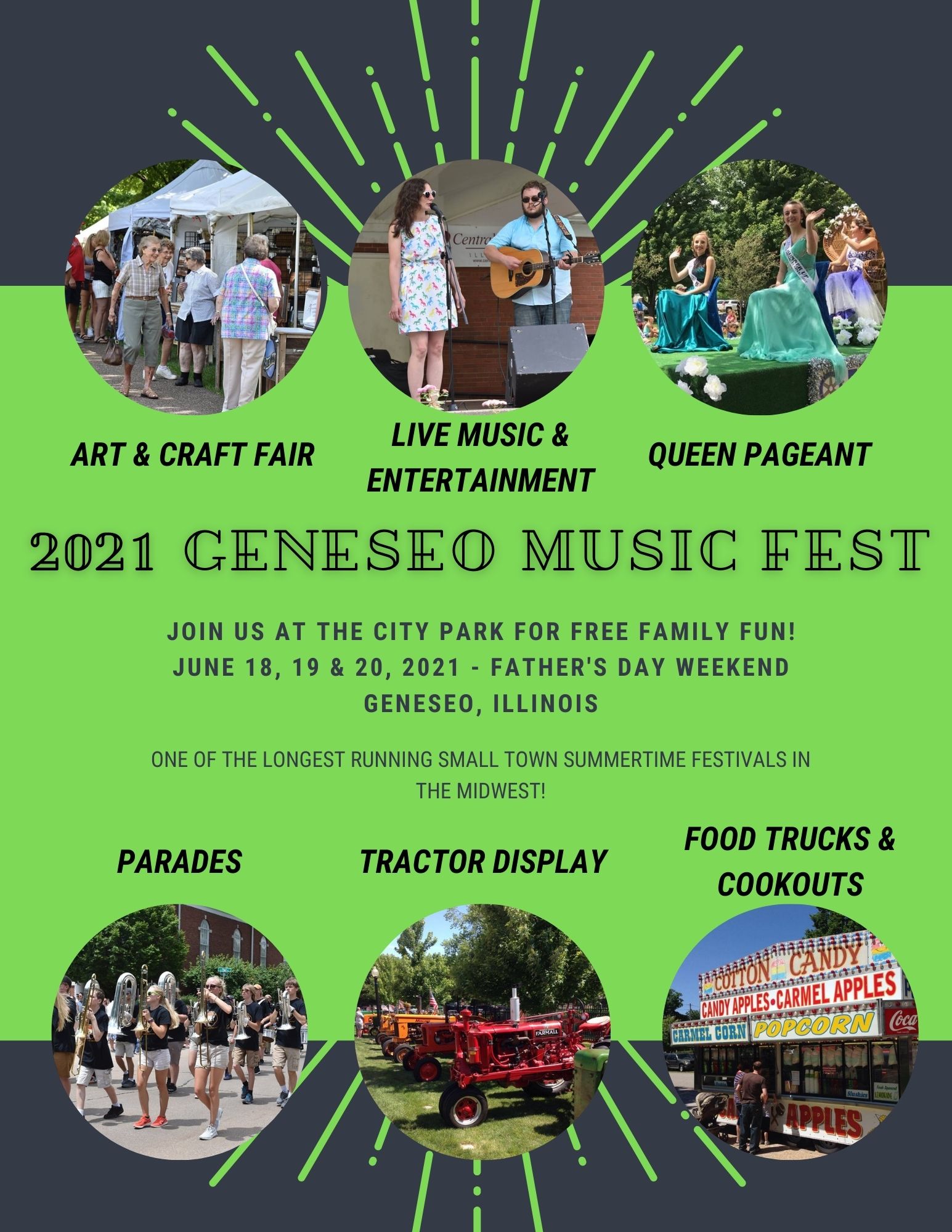 The 2021 Geneseo Music Fest is a cornucopia of free family entertainment and kicks off on Friday June 18, 2021! Here is the Friday schedule: