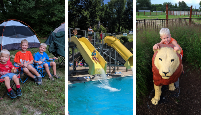 Photo: Camping at Loud Thunder Forest Preserve in Rock Island Co, riding the yellow slide at White Water Junction in Rock Island, IL, Sitting on the lion at Niabi Zoo in Coal Valley, IL